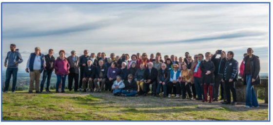 Le lendemain, dimanche à 9h30 tout le monde est sur le pont et part en convoi vers « les Côtes Matras » pour un panorama à 360 ° du bocage bourbonnais. C’est le point culminant de la commune de Noyant-d’Allier dont l’altitude est de 485 m. Le soleil étant de la partie, c’est le moment d’une photo souvenir des Châtillonnais sur le site après un café accompagné de « pompes aux grattons ».